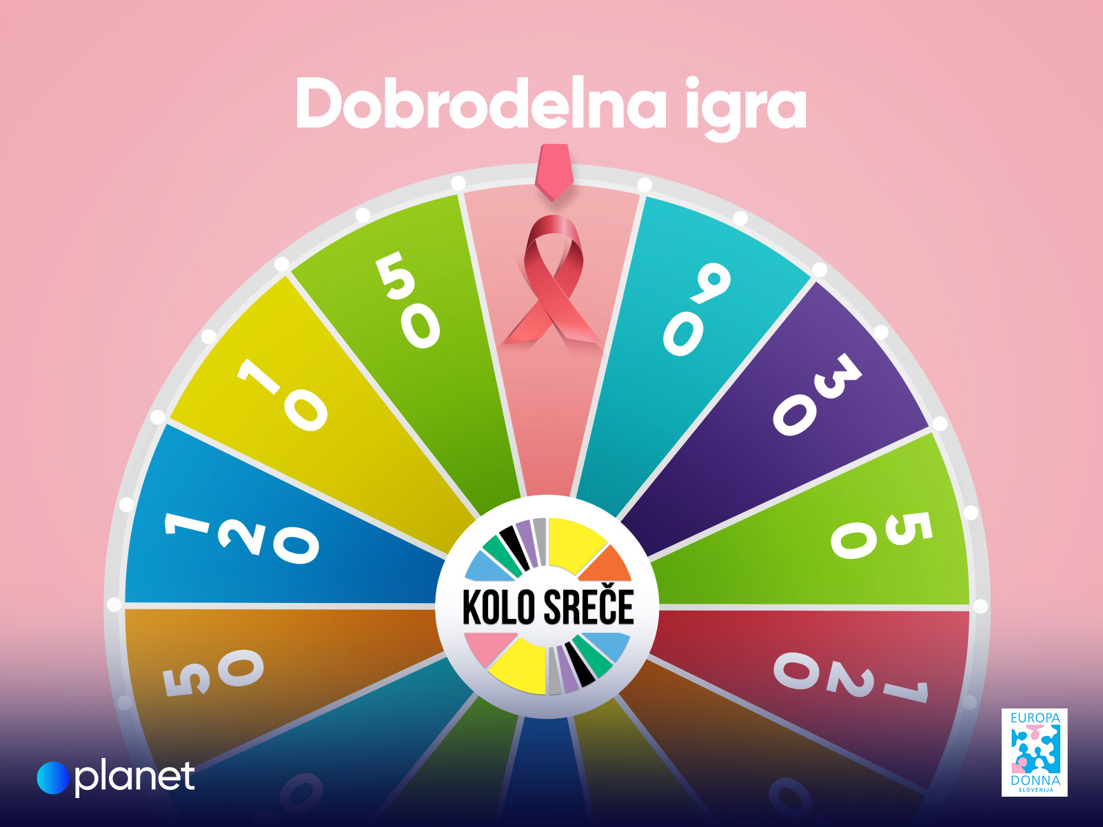 Akciji Rožnati oktober se pridružuje televizijska hiša Planet TV s kvizom Kolo sreče. Skupaj z gledalci, novinarji ter voditeljema Natašo Naneva in Klemnom Bučanom bomo izkupiček pri igranju družabne igre Kolo sreče namenili v dobrodelne namene. 15. oktobra bo Planet TV prisoten tudi na stojnici Združenja Europa Donna Slovenija, zato vabljeni, da se nam pridružite in skupaj naredimo nekaj dobrega.